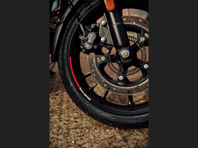 Η HNTR 350 είναι η μοναδική Royal Enfield σε κυκλοφορία που διαθέτει ευέλικτα μπροστά και πίσω ελαστικά 17 ιντσών και εντυπωσιακές ζάντες από χυτό κράμα. Τα tubeless ελαστικά σας επιτρέπουν να οδηγείτε αδιάκοπτα για όση ώρα θέλετε, προσφέροντας την αναγκαία πρόσφυση ώστε να διευκολύνουν την επαφή μασπιέ και εξάτμισης με την άσφαλτο.
