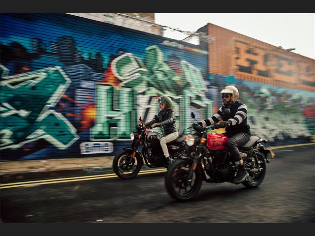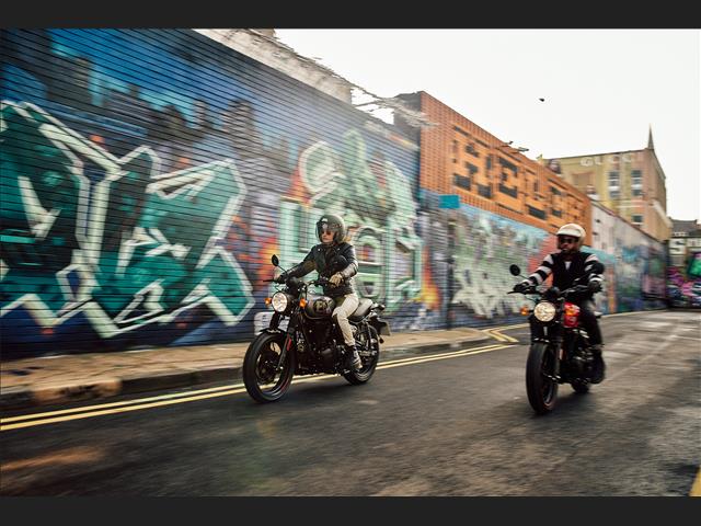 Με κοντύτερο μεταξόνιο, λιγότερο βάρος και αυστηρότερη γεωμετρία, το ογκώδες πλαίσιο της HNTR 350 είναι εξοπλισμένο μ’ ένα σετ τροχών 17 ιντσών, modern-retro αισθητική και J-Series κινητήρα 350cc που εξασφαλίζει τη μέγιστη ισχύ.